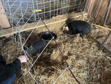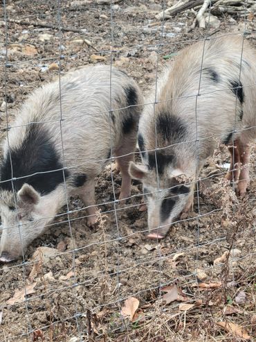 We purchase our piglets from trusted local breeders and raise them here on our farm until ready for processing.